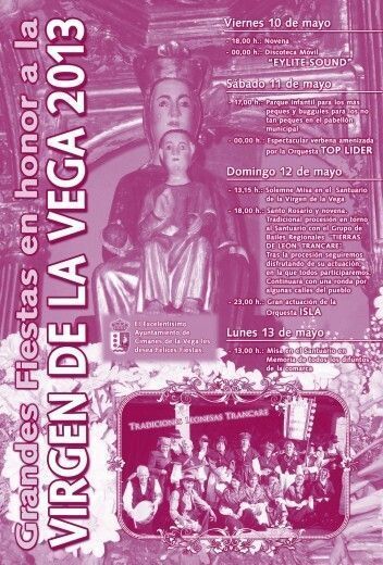 El domingo será el día grande de las fiestas y los actos en honor a la Virgen toman protagonismo. A las 13:15 horas tendrá lugar la misa en la ermita; ya por la tarde, a las 18:00 horas, se celebrará el rosario y la novena. Después se celebrará la tradicional procesión alrededor del santuario que será acompañado por el grupo de bailes regionales ‘Tierras de León. Trancare’. La música será la nota de la noche que en esta ocasión correrá a cargo de la orquesta Isla.
