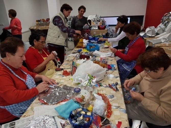 Es incalculable el trabajo invertido. Las horas se cuentan por cientos -desde mayo todas las tardes- e incluso bromean “no hemos tenido vacaciones”, ya que cuando pararon en su trabajo de preparar ornamentos fue para realizar dulces, panes y otro tipo de encargo culinario para toda la localidad. Y es que, son mañosas con las ‘manualidades’ navideñas y con los fogones, no en vano son apodadas cariñosamente como ‘las cocineras’ ya que se encargan de comidas, meriendas y chocolates de hermandad de la localidad.