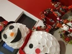 Entre risas, café y algún dulce, pasan la tarde trabajando con la ilusión de ver su pueblo decorado la próxima Navidad. La localidad es grande y a pesar de que han elaborado aproximadamente 1.500 adornos no tienen suficiente para ornamentar todo casco urbano. Y hasta en eso han pensado. Ellas mismas han elaborado un plan para la distribución de la ornamentación. La mayor parte irá engarzada en cadenetas, pero también han elaborado centros de mesa que decorarán el hall del consultorio médico, coronas para las puertas de edificios públicos y otros adornos, como unas pequeñas ovejas elaboradas con rollos de papel higiénico o un simpático muñeco de nieve fabricado con 200 vasos de plástico (reutilizados de una chocolatada).