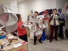 “Todo comenzó después de la Navidad que pensamos que podíamos hacer algo para que nuestro pueblo luciera con ambiente navideño” explican. Eso fue el inicio. Después llegó la hora de ir recopilando material, “lo teníamos claro, utilizaríamos material reciclado”. Así que todo lo que caía en sus manos encontraba un futuro como ornamento. “Atropábamos de todo” aseguran entre risas mientras muestran orgullosas unos piñones cogidos de una excursión a Valencia. Todo les ha sido de utilidad. Han recibido cientos de donaciones de material reciclado para su proyecto y es que… no ha sido poco el material utilizado. Las cifras marean, más de 5.000 tetra brik o 200 garrafas de agua son solo un ejemplo de la gran cantidad de elementos reciclados. Son adornos elaborados, por ejemplo, cada bola grande está formada por 20 tetra brik.