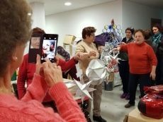 Algunas de estas piezas cuentan con historia propia, como el vestido llegado de Benidorm. Hace un tiempo, allá por las tierras alicantinas, una de ellas se antojó de un vestido de lentejuelas que vendía un vendedor ambulante. El marido que se negaba a comprarlo (por muy barato que fuera) con la excusa de “esto no te lo vas a poner tú”. Después de untoma y daca, y tras el preceptivo regateo al vendedor, compraron el vestido. El marido, a regañadientes, insistió “esto no te lo vas a poner tú” a lo que ella contestó con desparpajo “te aseguro que este vestido se va a lucir mucho”. Nunca se lo pudo imaginar el marido… todas las lentejuelas del vestido han sido aprovechadas en la decoración de muchos de los adornos elaborados.