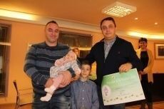 Los más jóvenes coyantinos visitaron ayer el Ayuntamiento de Valencia de Don Juan para uno de los primeros actos como 'vecinos' del municipio: recibir su cheque bebé. Dicen que los niños llegan con un pan bajo el brazo y en Valencia de Don Juan llegan con 400 euros del conocido 'cheque bebé' que entrega el Ayuntamiento a las familias de los nuevos coyantinos.