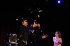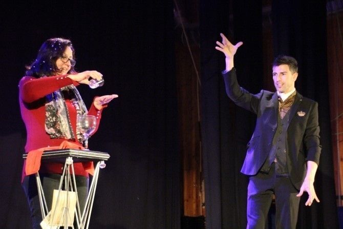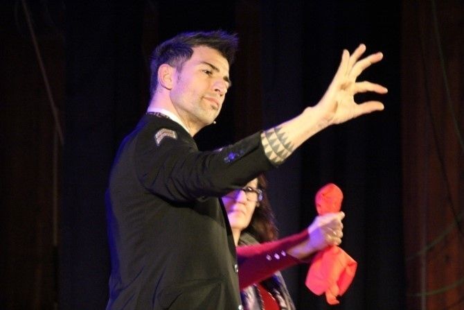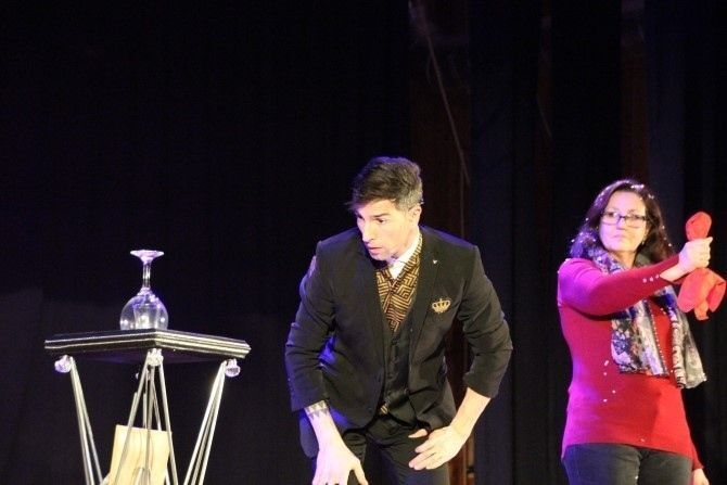 El ilusionista jugó con el público que se entregó a efectos de cartas, predicciones y hasta una paloma escondida en un pañuelo. Nada más entrar en el escenario avisó, "no me gusta estar solo en el escenario". Y no lo estuvo, por el escenario pasaron varios 'voluntarios' que 'ayudaron' en sus trucos y sus magias.
