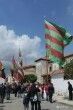 decenas de niños y niñas ataviados con trajes tradicionales. Las carrozas