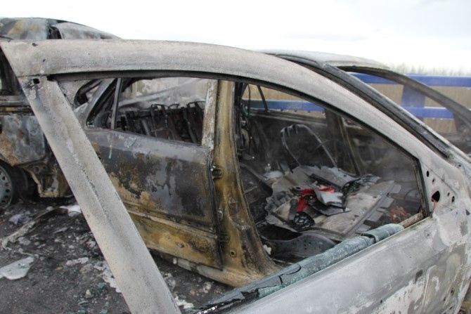 Aproximadamente a las 18:00 horas un fuerte granizo sorprendía a los conductores en la A-66. En el kilómetro 169,5 dirección León (en el viaducto de Fontecha) tenía lugar un accidente por colisión multiple. Testigos han explicado que el hielo caído provocó un primer impacto entre un turismo y una furgoneta. A continuación, un turismo perdió el control -la carretera era una pista de hielo- y colisionaba contra la furgoneta. Minutos después otro vehículo ha impactado fuertemente contra uno de los vehículos colisionados.Ha sido entonces cuando la furgoneta y uno de los turismos han comenzado a arder. Fuentes del 112 han indicado que han sido hasta cinco vehículos los implicados en este siniestro.