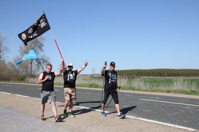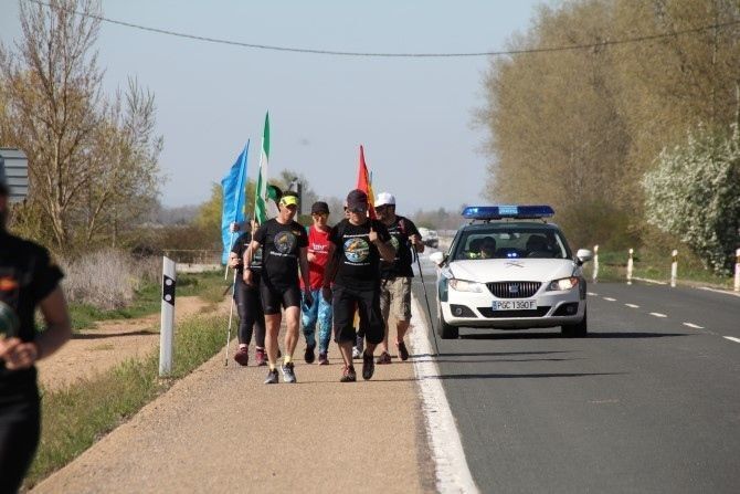 Bajo un sol de justicia y con mucho ánimo recorrieron la N-630. Partieron hace unos días de Oviedo y el objetivo es llegar a Madrid para participar en la manifestación por la Equiparación Salarial el día 5 de mayo en la capital española. Una auténtica barbaridad de kilómetros, más de 430 kilómetros en apenas 14 días de etapas, una media de más de 30 kilómetros. La de ayer una de las más largas, llana pero larga.