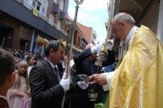 Una alfombra de tomillo guió la procesión por el centro de la localidad. En los balcones mantones y en los lugares de costumbre los "altares". El pendón de Valencia de Don Juan abriendo la procesión en la que participaron casi medio centenar de niños de Primera Comunión. Ellos son grandes protagonistas de este fiesta, ya que son ellos los encargados de colmar y cubrir de pétalos la 'Custodia'.