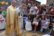 Una costumbre que aún se realiza en algunos pueblos y que en Valencia de Don Juan pervive es presentar a sus recién nacidos ante el altar con la Custodía. Este año volvió a cumplirse la tradición y así varios "soles" coyantinos fueron presentados en un acto que rememora la presentación del Niño Jesús en el Templo.