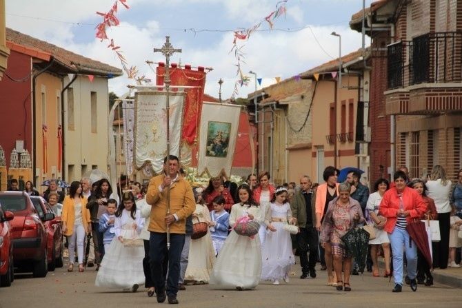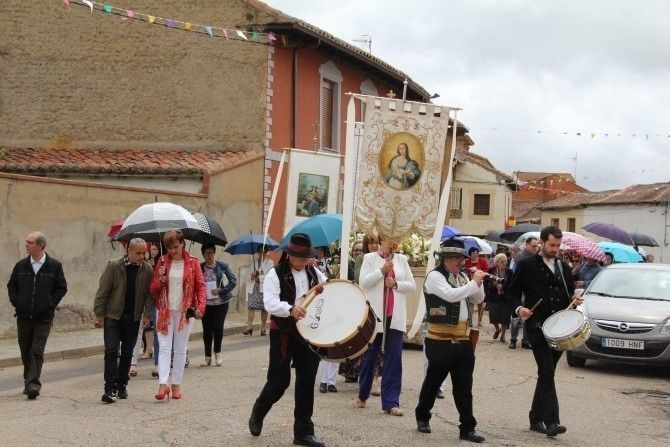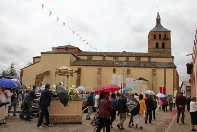 La lluvia dio tregua para que la procesión pudiera realizarse, aunque se pudo ver algún paraguas -complemento indispensable estas fiestas- abierto durante el recorrido. Las niñas y niños de Primera Comunión también acompañaron en este acto religioso en el que todo el pueblo se vuelca con devoción. Casi como si fuera 'pactado' la chaparrada cayó en Villademor al entrar la procesión en la iglesia.