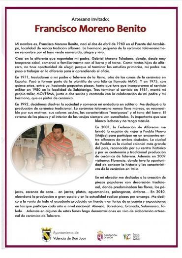 Como es tradicional cada año se destaca un oficio y un artesano. En esta edición el artesano invitado es el alfarero Francisco Moreno Benito.