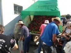 El buen tiempo, un intenso calor al mediodía, acompañó la primera jornada de Feria. Un bullicio de visitantes, es típico ver como desembarcar en la localidad autobuses enteros, visitaron la muestra en busca de los mejores pimientos que son vendidos por los propios particulares.