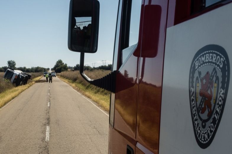 Un camión cistierna cargado con 38 toneladas de gases -predominando el propano- volcó ayer por la mañana en el kilómetro 16 de la carretera LE-412 en el tramo entre Roperuelos a Villaquejida. Dos dotaciones del parque de bomberos de León se trasladaron hasta el lugar donde la zona se acordonó por parte de la Guardia Civil. Se comprobó que no había tenido lugar una fuga, el trasvase del líquido tendrá lugar hoy miércoles a primera hora.