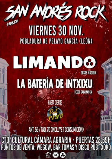 Pobladura de Pelayo García estrena hoy un nuevo festival de música. El San Andrés Rock se estrena hoy y tiene todos los ingredientes para triunfar en una localidad donde bien saben de festivales de este tipo. El cartel de esta noche está protagonizado por Limando que llega desde Madrid y La Batería de Intxixu que ha sustituio a Sonido Internacional que causó baja a última hora. La fiesta, que tendrá lugar en el Centro Cultural Cámara Agraria a partir de media noche, continuará con la música de la discoteca móvil DJ Tino que acompañará a los más trasnochadores.