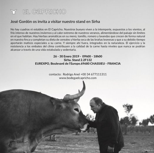 José Gordón, presentará en Lyon la carne y los embutidos de buey de El Capricho. SIRHA, el gran evento de hostelería y restauración, reúne del 26 al 30 de enero a los profesionales del sector de la alimentación a nivel mundial.