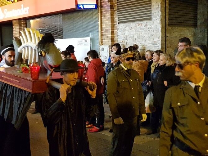 "Enterramos la Sardina y se nUos va Don Carnal, esperemos otro año a que llegue el Carnaval". Un año más Valencia de Don Juan despidió el Carnaval entre carcajadas y coplillas entonadas por La Alegre Cofradía de la Sardina Coyantina. Una cómica comitiva acompañó el entierro que contó con la presencia de un "Maduro" muy conciliador, autoridades civiles y religiosas y, como no, plañideras. Valencia de Don Juan ya entró en Cuaresma tras el Entierro más cómico.