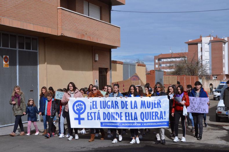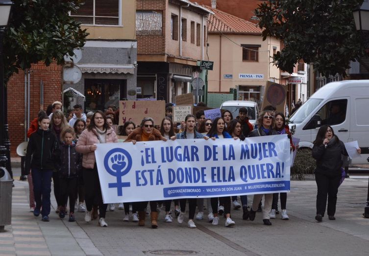 Manifestación por las calles de Valencia de Don Juan con motivo del 8M organizada por el Colectivo 'Coyanza es Morado'
