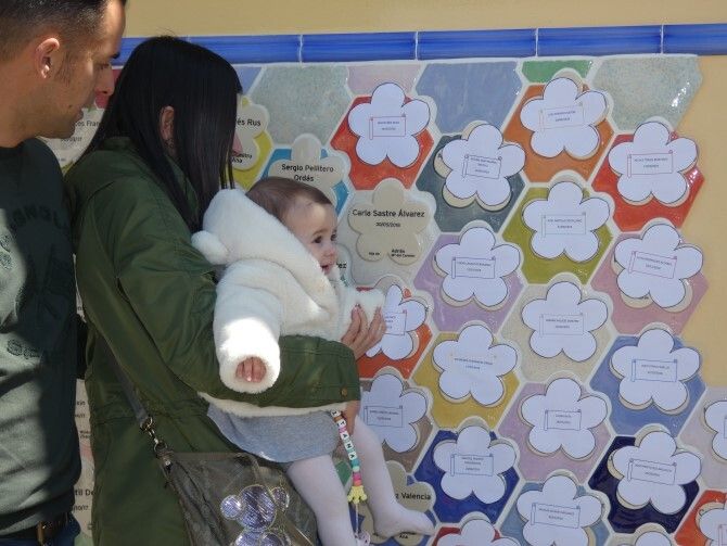 En Santa María del Páramo los niños nacidos en la localidad aparecen reflejados en un vistoso mosaíco en el parque infantil de la plaza El Labrador. Esta iniciativa fue creada por el Ayuntamiento el año pasado como un homenaje a la natalidad en lo que es un bonito recuerdo en un gran y colorido mosaico. Ayer viernes tuvo lugar la inauguración de inauguración de la segunda parte de este mosaico. En total 21 niños fueron homenajeados, 21 piezas nuevas en este puzzle.