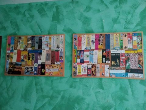 Durante  el vermú  literario, en el que también se puedo admirar una colección de marcapáginas, se convocó  una "hacendera "para el próximo sábado, 27 de abril, y se ultimaron detalles para la cita gastronómica  del día 4 de mayo, donde tendrá lugar la ya habitual comida común para celebrar Santa Cruz.