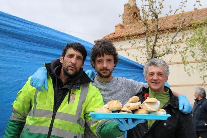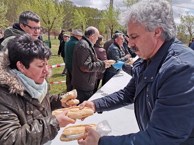 Después del oficio religioso tuvo lugar el reparto de bocadillos. Según indició el alcalde, Higinio García, se repartieron alrededor de un millar de raciones.