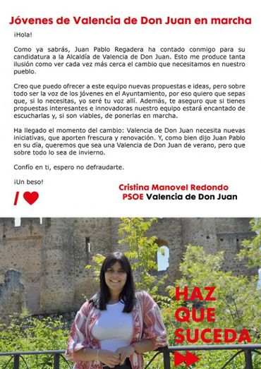 Por lo tanto,y a escasos días de lo que decida la mayoría de sus habitantes me gustaría desde la plataforma social desde la que escribo y que también han utilizado los distintos partidos estos días anunciándonos todo cuanto iban hacer ,con tan buenos propósitos y adornados con unas fotos en algún caso preciosas y otras increíbles porque ni yo mismo,aficionado a la fotografía conocía ,que esos buenos propósitos no sean flor de un dia ,y que se acuerden que la legislatura dura cuatro años