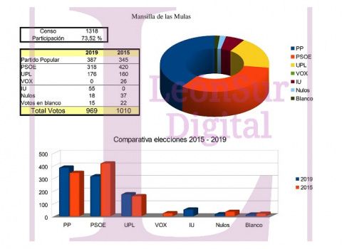 En Laguna de Negrillos el PSOE ha ganado con cuatro ediles, insuficientes para gobernar. El PP ha obtenido tres y Ciudadanos dos. Habrá que esperar para ver la configuración del nuevo ayuntamiento.