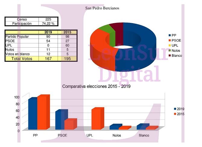 En San Pedro Bercianos el PP ha logrado mayoría absoluta al conseguir los cinco concejales que conforman la corporación municipal.