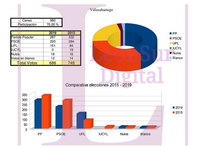En Villasabariego el PP ha ganado las elecciones con cuatro concejales. El PSOE ha logrado tres ediles y UPL dos. Habrá que esperar la configuración del municipio.