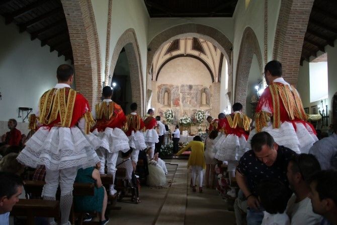 El San Sebastián, cuenta la leyenda que un centurión romano que niega su fe católica. Con una característica careta y ropa de estilo napoleónica, es el protagonista de la procesión. Este año el personaje fue interpretado por Iván Martínez. Pero la procesión tiene muchos más elementos. Los apóstoles -también ataviados con máscaras- y decenas de niños portando imágenes.... y por supuesto... los danzantes imprescindibles en toda celebración que se precie en la localidad.