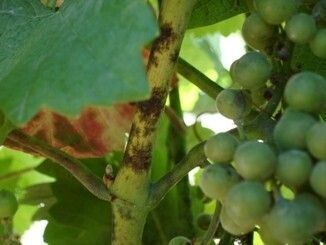 la madera de poda afectada, con manchas en sarmientos al final de la