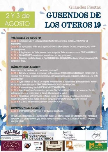 Algadefe ha arrancado agosto de celebración. Las fiestas inundan la localidad desde este viernes y se prolongarán hasta el lunes, 5 de agosto, con un variado repertorio de actividades. Pintacaras, globoflexia y música ya se dieron cita este viernes y para hoy sábado la agenda llega repleta. Por la mañana habrá un concurso de natación en la piscina (12:00 horas) y por la tarde volverá a la localidad 'La Caza del Zorro' (18:00 horas) que promete no defraudar y con un gran premio. También esta tarde habrá tiempo para los bailes tradicionales con el grupo de Jotas Aguzo (20:00 horas) y después parrillada (21:00horas). La diversión continuará por la noche en el Bar La Gruta con la discoteca Elite Sound.