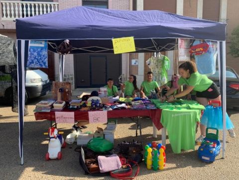 La asociación recauda fondos con un puesto en el mercadillo semanal