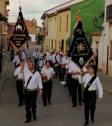 En Villamañán el pasado fin de semana El Salvador regresó a las calles de la localidad. La banda de cornetas El Salvador-La Soledad recuperó una antigua tradición perdida en el tiempo. Así, se rindió homenaje al Santo en su festividad. Misa y una procesión por las calles de la localidad acompañada por la banda El Salvador-La Soledad.