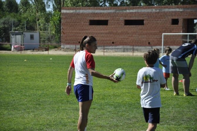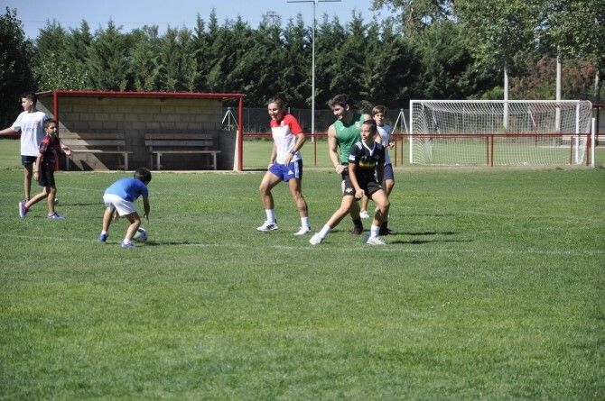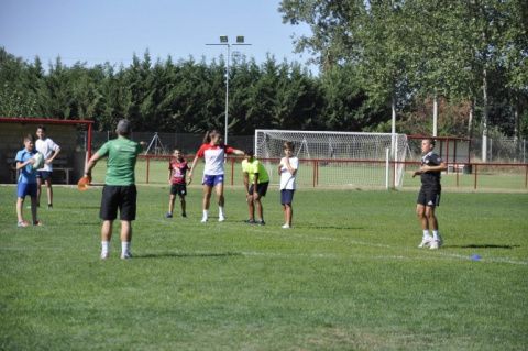 En los campos de fútbol del polideportivo municipal de Valencia de Don Juan se celebró este sábado mañana una jornada de iniciación al Rugby 7 protagonizada por la coyantina María Casado.