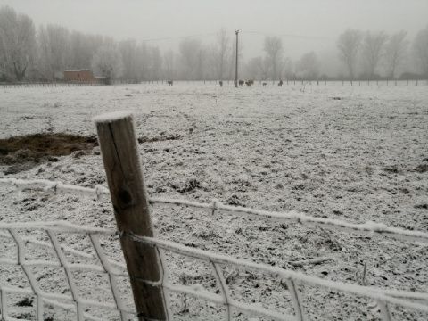 [Img #51489]Como si hubiera nevado... así es la cencellada. Pero no es nieve, es niebla congelada. Un fenómeno limatológico diferente a la escarcha que es cuando la humedad ambiental se condesa.