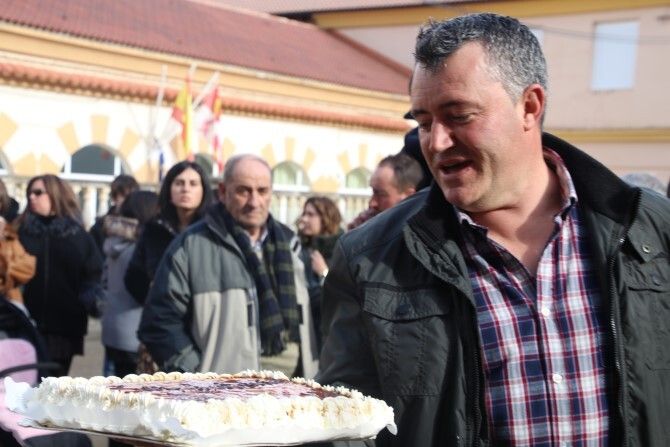 Después de la procesión y la preceptiva misa en honor al patrón. Decenas de personas se arremolinaron a los pies de la iglesia para asistir a la subasta. Fueron siete las tartas subastadas y 550 euros los recaudados. Cantidad destinada a la Cofradía de San Antonio. En Algadefe es todo un honor lograr una de estas tartas -que previamente ha sido donada por algún vecino- para disfrutar en compañía de la familia durante la fiesta.