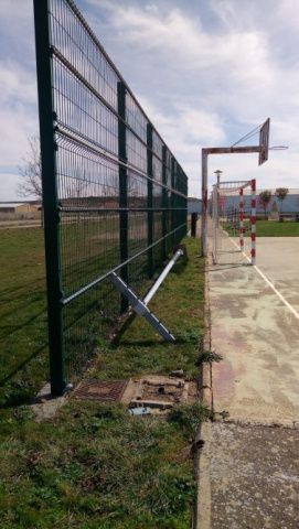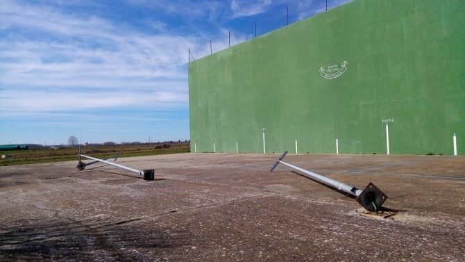 Estas farolas servían para iluminar las dos canchas que conforman el área deportiva: una dedicada al frontenis y la otra al fútbol sala. Para poder acceder a las luminarias, los ladrones, provistos de llaves inglesas y otras herramientas, desanclaron los mástiles sobre los que se asentaban los focos y los tumbaron en el suelo. Algunos de los postes han quedado inservibles, ya que la base de sujeción está doblada debido a la fuerza ejercida por los cacos para derribarlos.