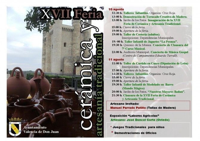 Mañana se inaugura en Valencia de Don Juan la que será la décimo séptima edición de la Feria de Cerámica y Artesanía Tradicional. Se trata de una feria totalmente consolidada en el verano coyantino y, en esta ocasión, contará con veintiocho artesanos procedentes de diferentes provincias españolas, que expondrán sus piezas realizadas en diversos materiales como cerámica, madera, cristal o cuero, entre otros.