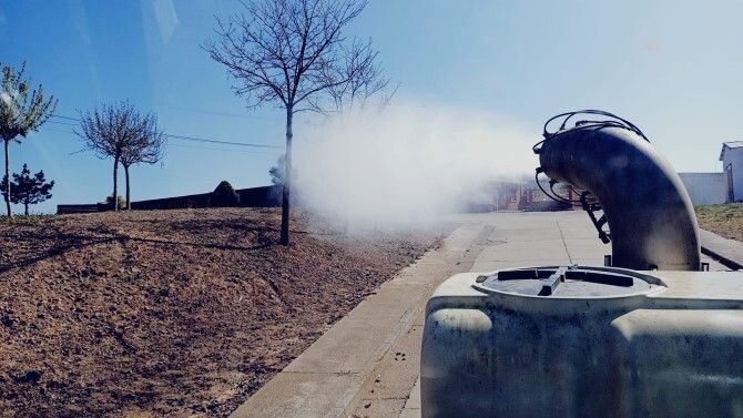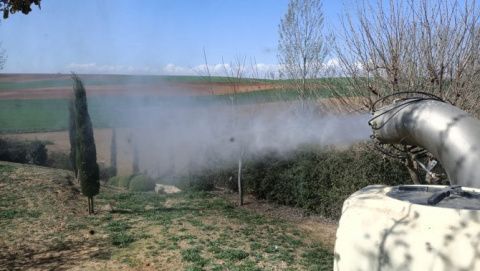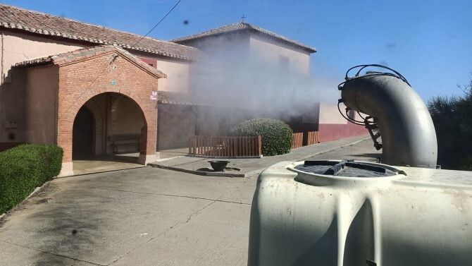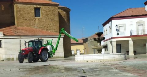 Por este motivo este miércoles se ha llevado a cabo una profunda limpieza y desinfección de ambas localidades.  Uno de los concejales acompañado con otro voluntario ha desarrollado durante toda la mañana la tarea de desinfectar las vías y espacios públicos de los dos pueblos. Una sulfatadora y un tractor han sido las herramientas de esta 'lucha' para evitar el avance de la pandemia.