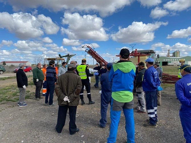 En Santa María del Páramo este martes tuvo una acción formativa orientada a los agricultores. Militares de la Unidad Militar de Emergencias (UME) enseñaron pautas y mejores formas para desinfectar con maquinaria agrícola contra el Covid-19.