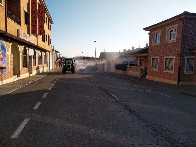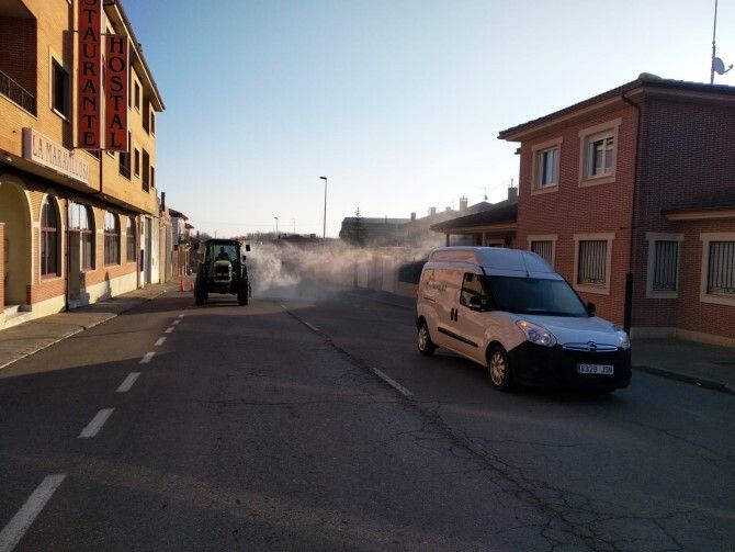 Hoy viernes, gracias a la colaboración de varios vecinos, todo el municipio está volviendo a ser desinfectado. Una labor que están llevando a cabo agricultores locales que con sus tractores y cubas están literamente "fumigando" contra el coronavirus.