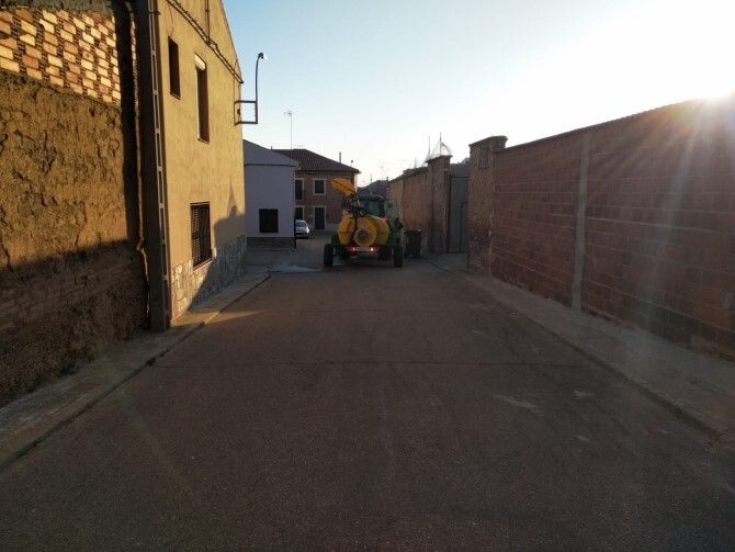 En Valderas, cada día, trabajadores municipales limpian y desinfectan las calles para prevenir el avance del coronavirus. La semana pasada el Ayuntamiento contrató una empresa especializada para que desinfectara con intensidad aquellas zonas más sensibles del municpio y el lunes la Unidad Militar de Emergencias limpiaron a fondo las dos residencias de la localidad así como sus entornos.