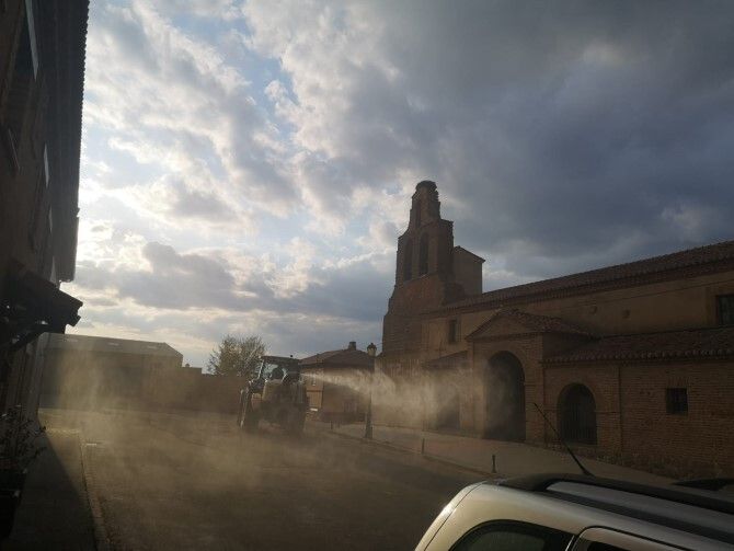Y así lo hizo, a última hora de la jornada, para molestar lo menos posible. Eso sí, antes se encargó de avisar a los vecinos para que "no se asustasen" y pensasen que se trataba de "otra cosa". Así, desinfectó en la tremenda soledad de esta cuarentena los tres pueblos del municipio y la granja de gallinas, "ya sabes que es como otro pueblo para nosotros y esencial" añade.