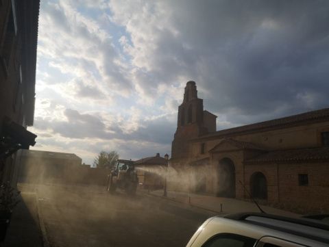'Pelli', como le conocen en toda la comarca, siempre se ha caracterizado por "mimar"a sus pueblos, porque desde la alcaldía ha puesto cuerpo y alma para que no le falte de nada a su municipio. Y ahora... toca desinfectar y lo hace encantando "esperando que sirva de algo". Sonríe desde su tractor mientras hace maniobras para seguir por las calles, antes ha dejado la compra en la puerta de casas de sus padres, "ellos no salen a nada, yo les hago la compra... pero no entro ni en casa para evitar todo contacto, lo hago por ellos... por todos".