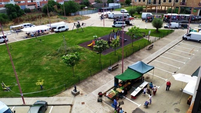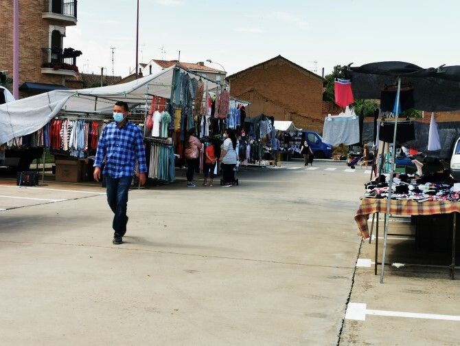 La nueva normativa y el bienestar general tanto de comerciantes como compradores ha llevado al Ayuntamiento a trasladar temporalmente el mercado a dicha zona. Entre los vendedores, los hay que no les gustan la nueva ubicación ni el lugar en el que les han colocado, "nos han traído pa'ca arriba" comentaba un comerciante a un viandante con tono quejicoso mientras señalaba que estaba bastante apartado. Otros se mostraban encantados con el lugar y señalaban incluso que "ésta es mejor zona y todo, hay más sitio para aparcar". Lo más repetido, "todo bien, que se le va hacer, lo que hace falta es que empiece el movimiento". Entre los asistentes, más de lo mismo, a unos les gusta a otros no y otros, simplemente, se resignan, "es lo que hay".
