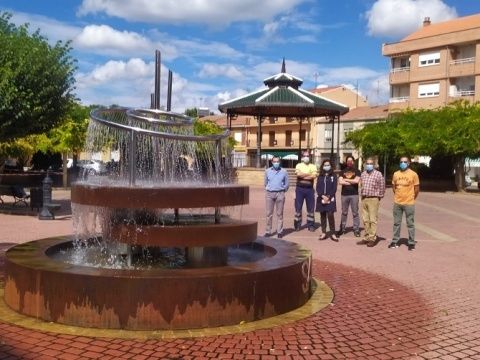 Los trámites comenzaron el pasado mes de diciembre cuando se adjudicó un contrato por valor de 18.000 euros para la realización de una fuente ornamental y su instalación. Se trata de una moderna y atractiva fuente de acero inoxidable con un diámetro de 4m y una altura de 2.30m, que se reparte en varias bandejas y en la parte de abajo con las letras del nombre del municipio en acero, que generan un llamativo aspecto en la plaza sin que el tamaño limite las dimensiones de la misma ya que está en el lugar de ubicación y realización de muchas actividades municipales como talleres, teatros, concentración de pendones, con lo que no reduce las dimensiones de la plaza y ofrece un aspecto renovado y distinto. Asimismo se colocará una señal identificativa de mencionada plaza del mismo material que la fuente.