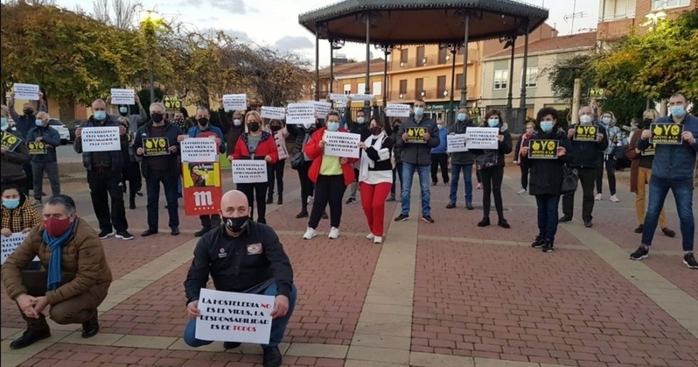El Ayuntamiento de Santa María del Páramo apoyó en la tarde del jueves la manifestación de los hosteleros de la localidad que de forma pacífica mostraron su rechazo a las medidas restrictivas impuestas por las instituciones para paliar los efectos del coronavirus y que les afectan directamente.