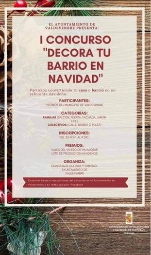 [Img #55094]El Ayuntamiento de Valdevimbre ha organizado dos concursos navideños. Así, hace unos días, el Consistorio ha presentado la primera edición del Concurso "Decora tu barrio en Navidad" con el objetivo de conseguir un ambiente navideño y lleno de ilusión en las que serán unas Navidades atípicas a consecuencia de la Covid. Los habitantes del municipio de Valdevimbre pueden participar convirtiendo casas o barrios en un referente navideño. Se han dispuesto dos categoríar, una familiar (para decorar balcones, puerta, fachada, jardín...) y otra colectiva (para calles, barrios y plazas). Las inscripciones para participar ya están abiertas y finalizarán el 9 de diciembre. Los elementos navideños deberán permanecer desde el 12 de diciembre hasta el 8 de enero.