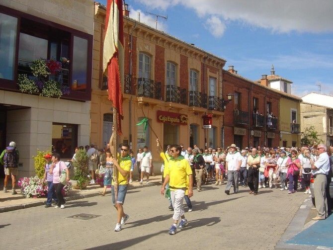 En la romería destaca la espectacularidad de los pendones que acompañan a los romeros desde Villamoros.