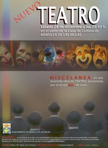 No será la única función teatral en Navidad. El sábado 28 de diciembre será el turno para el teatro para adultos. Teatro Iris pondrá en escena varias pequeñas obras de entretenimiento bajo el título de 'Miscelánea' y al día siguiente, día 29, el grupo coyantino Teatro la Torre de Babel interpretará la famosa obra de Antonio Gala 'Anillos para una dama'.