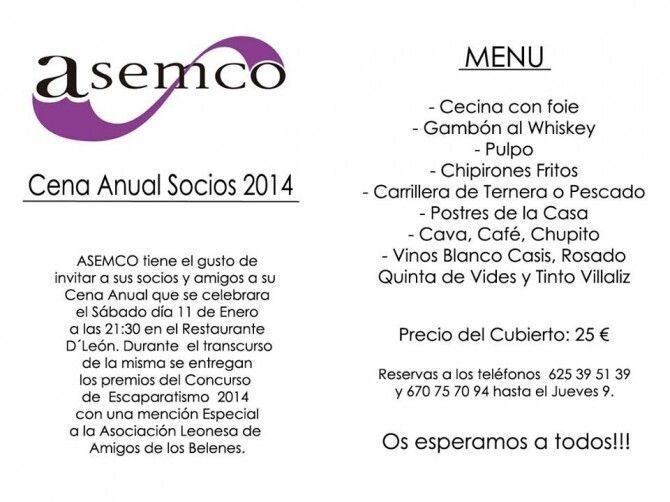 La Asociación de Empresas y Comercios de la comarca sur de León (Asemco) celebra esta noche su cena anual de asociados que este año tendrá lugar en el Restaurante D'León de Valencia de Don Juan.